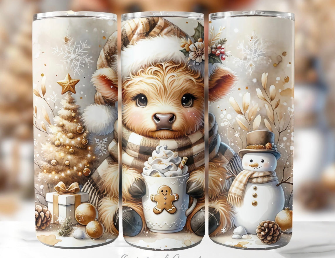 Christmas Highland Cow 20oz Tumbler - Design 2